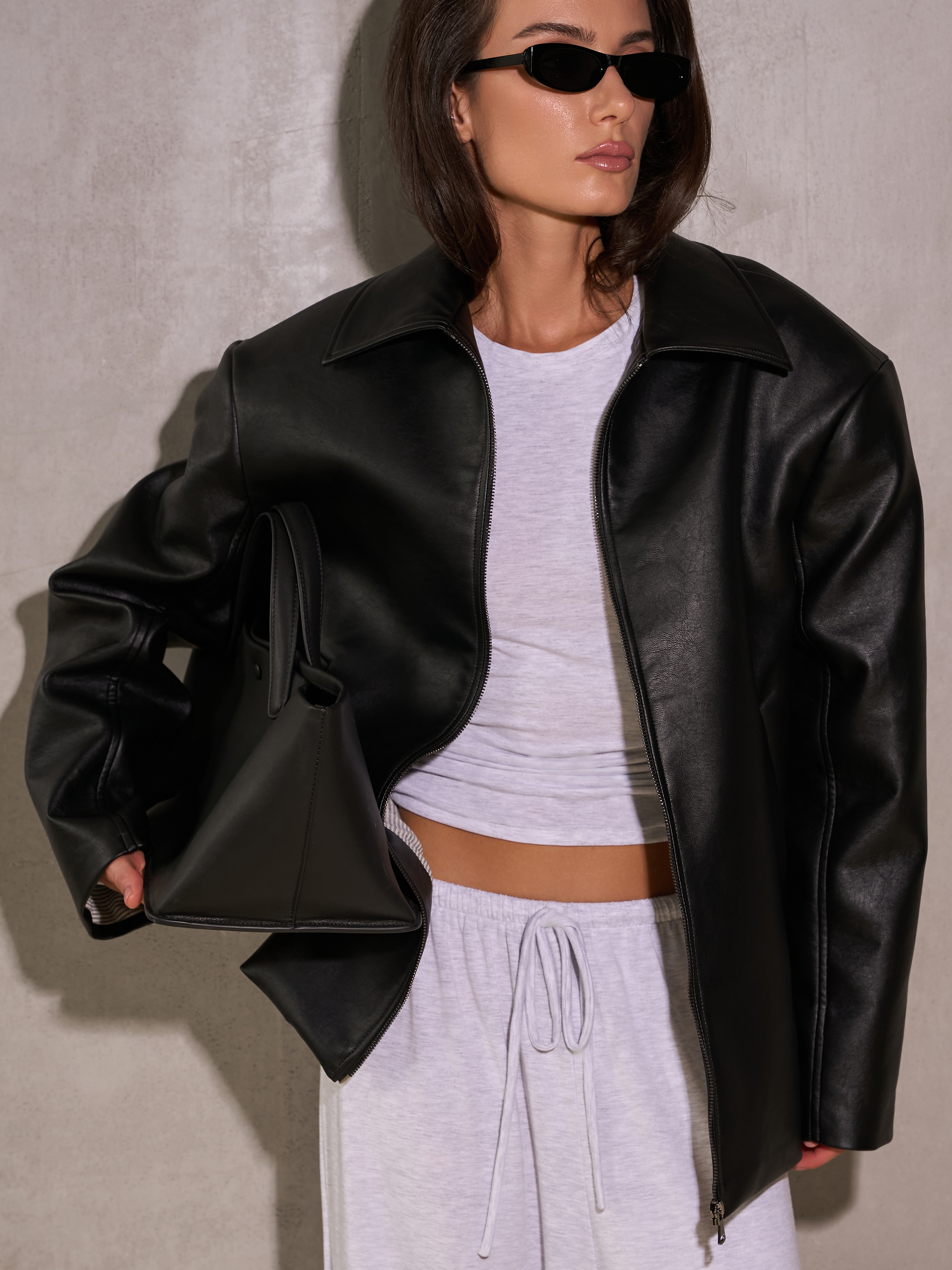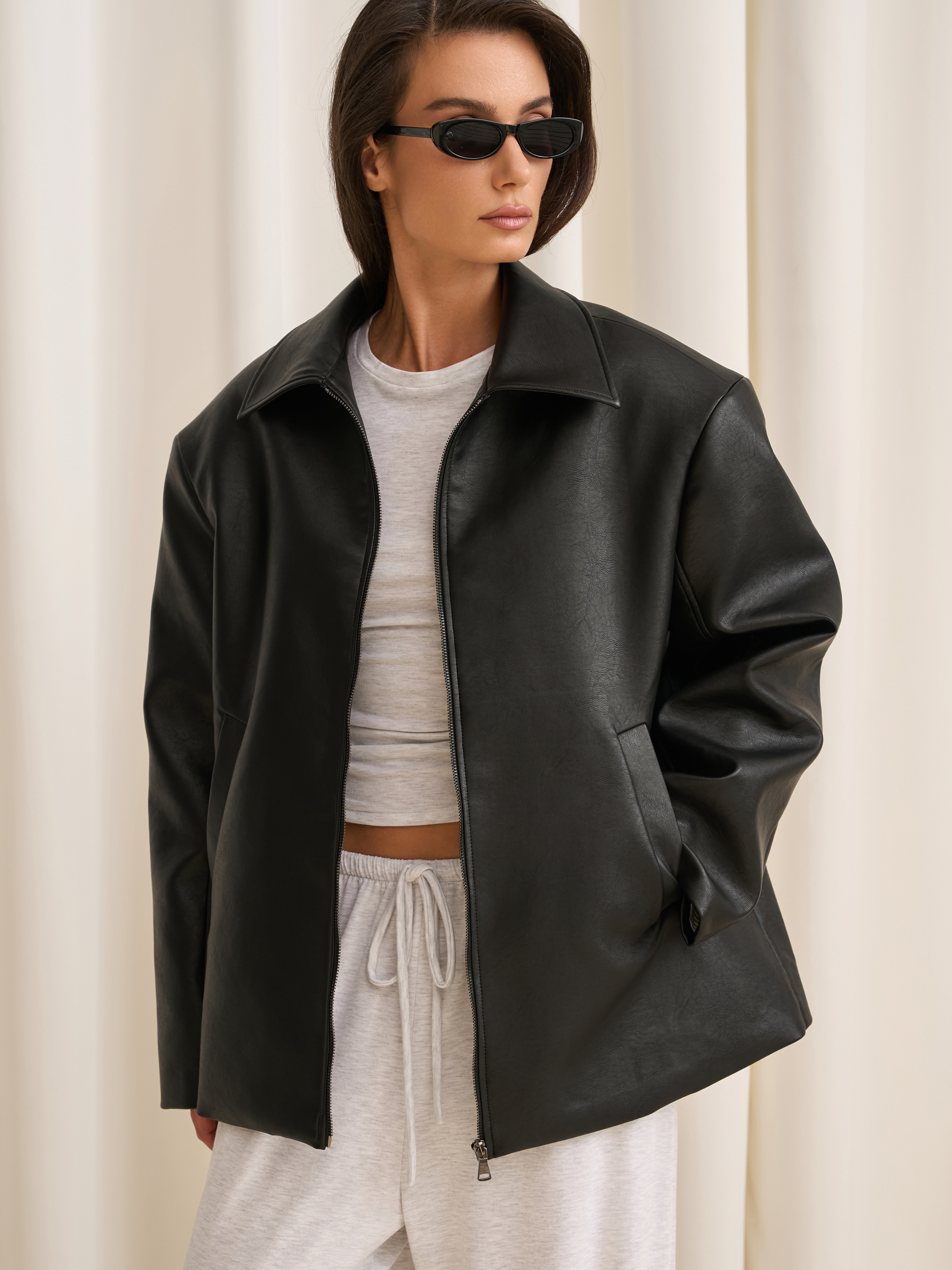 куртка из веган кожи с объемными подплечниками